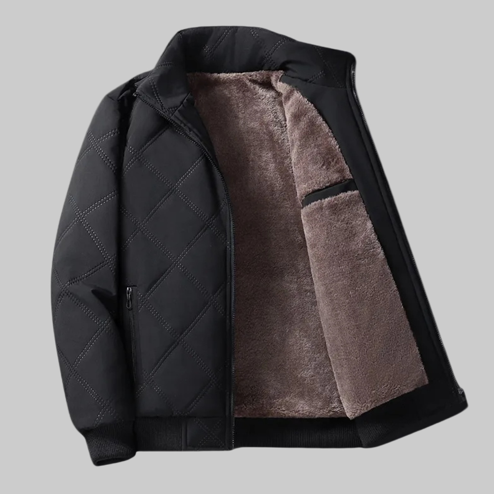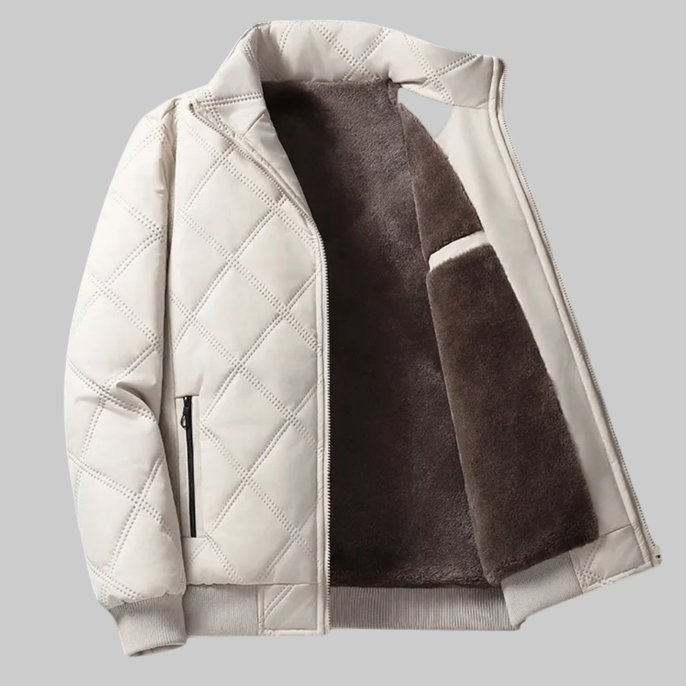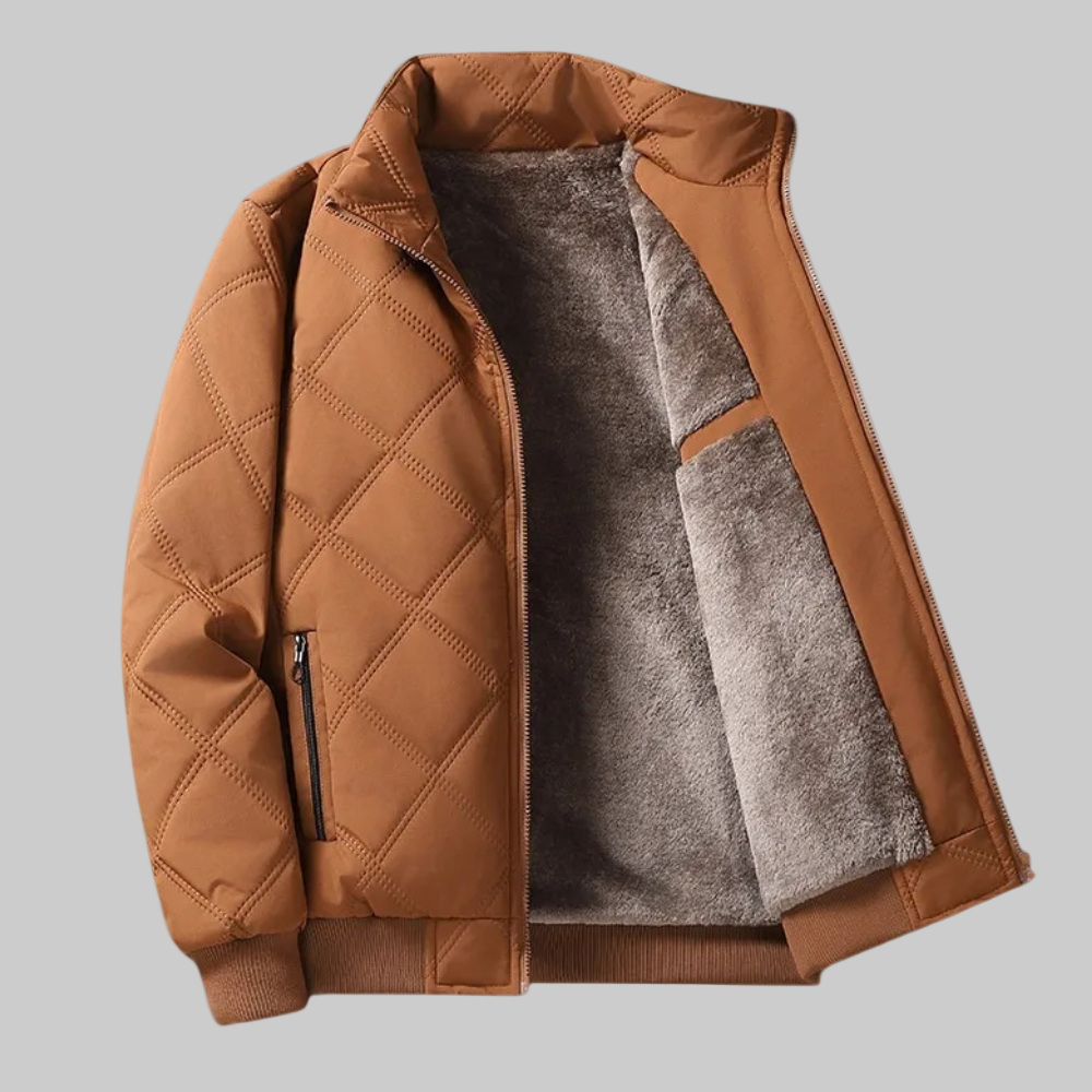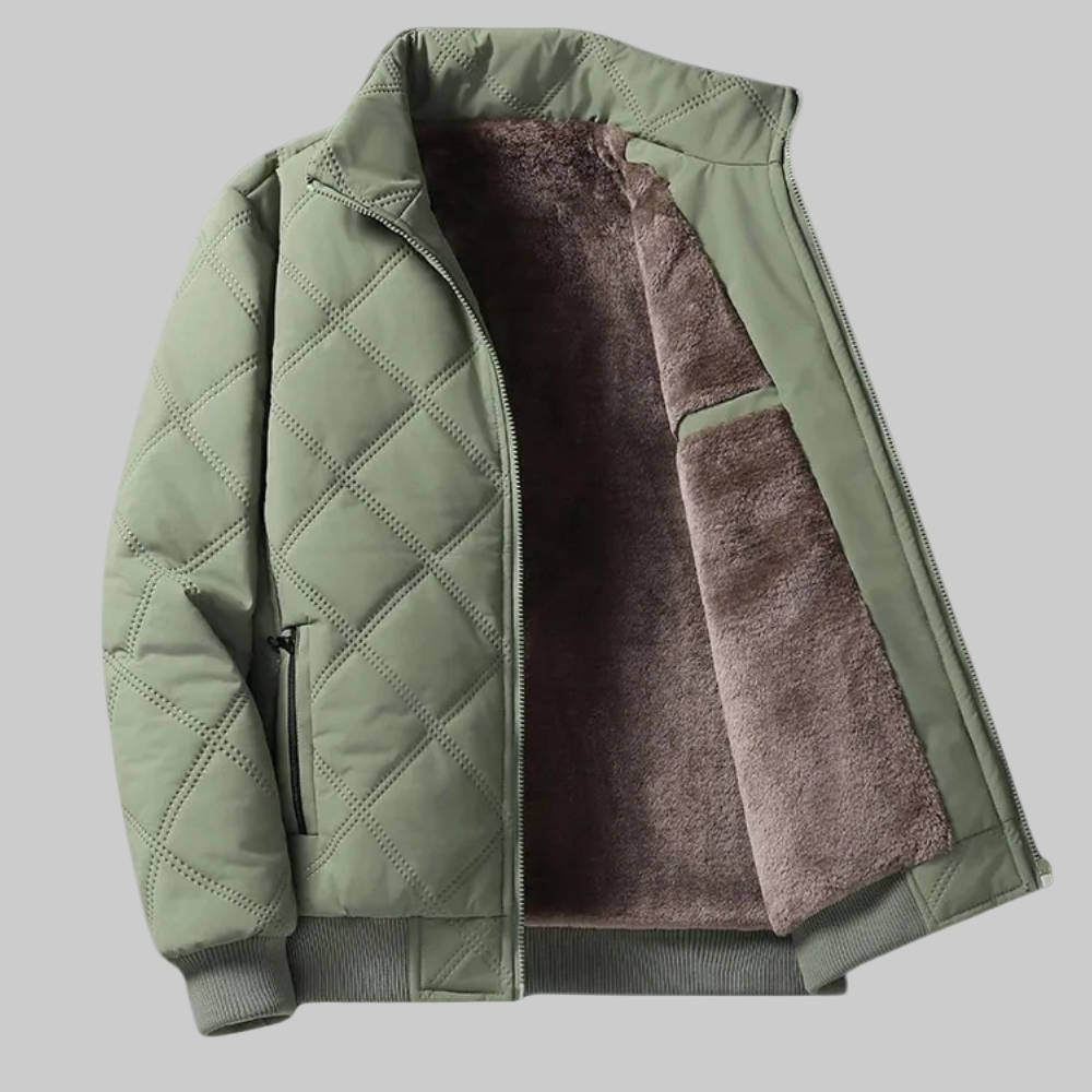This jacket features a quilted exterior with a front zipper closure and ribbed cuffs for a structured finish. It includes zippered side pockets and an inner lining designed to add an extra layer. The interior also features a patch pocket for carrying small essentials.